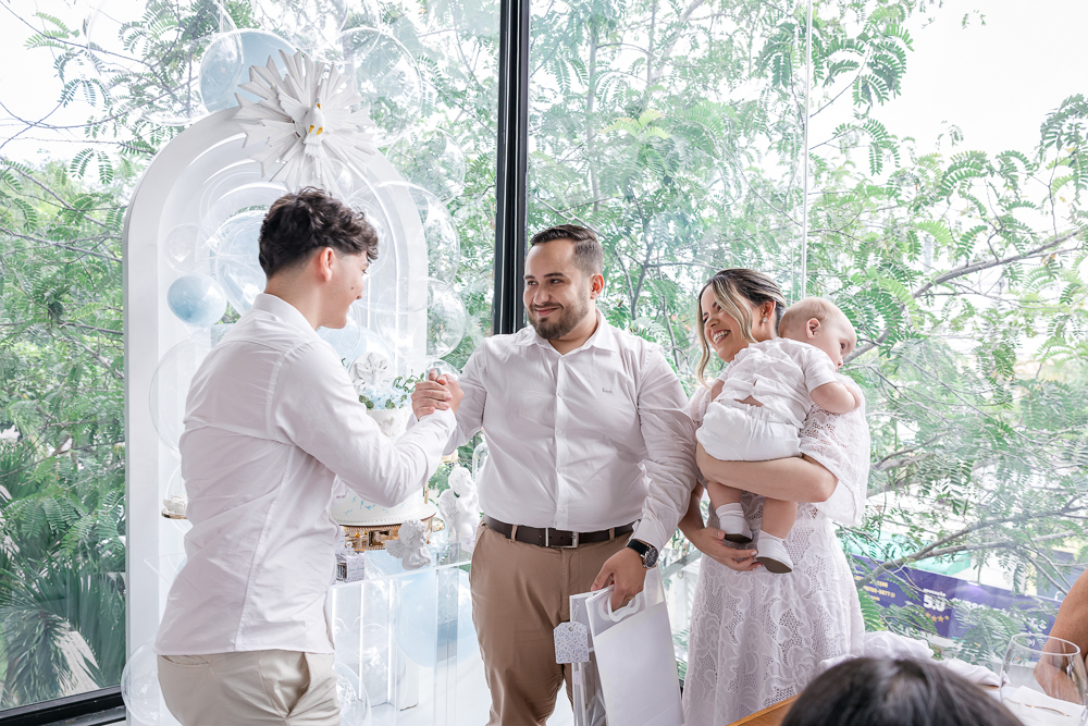 Entre orações e sorrisos, a família celebrou a vida, a espiritualidade e os laços que crescem junto com ele.